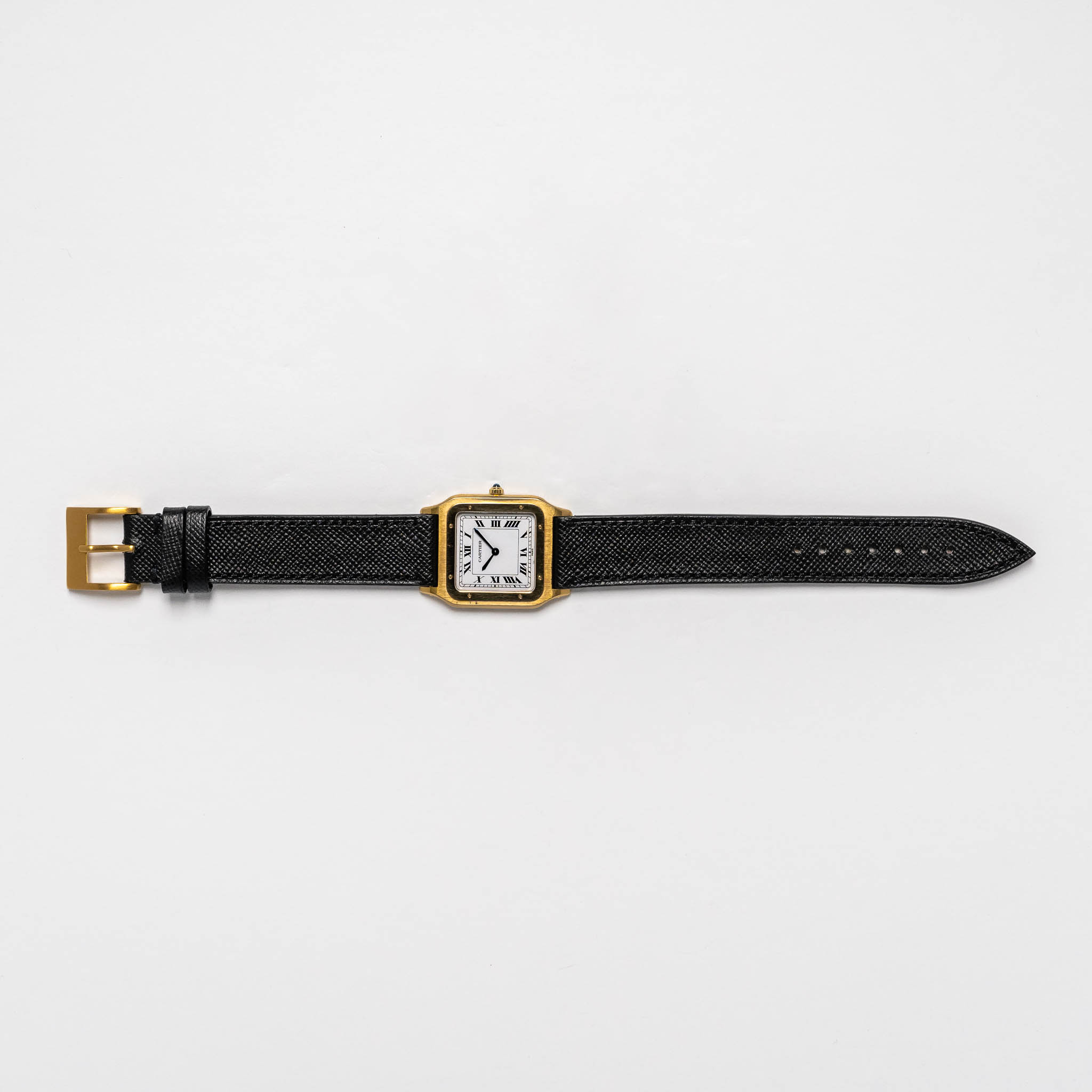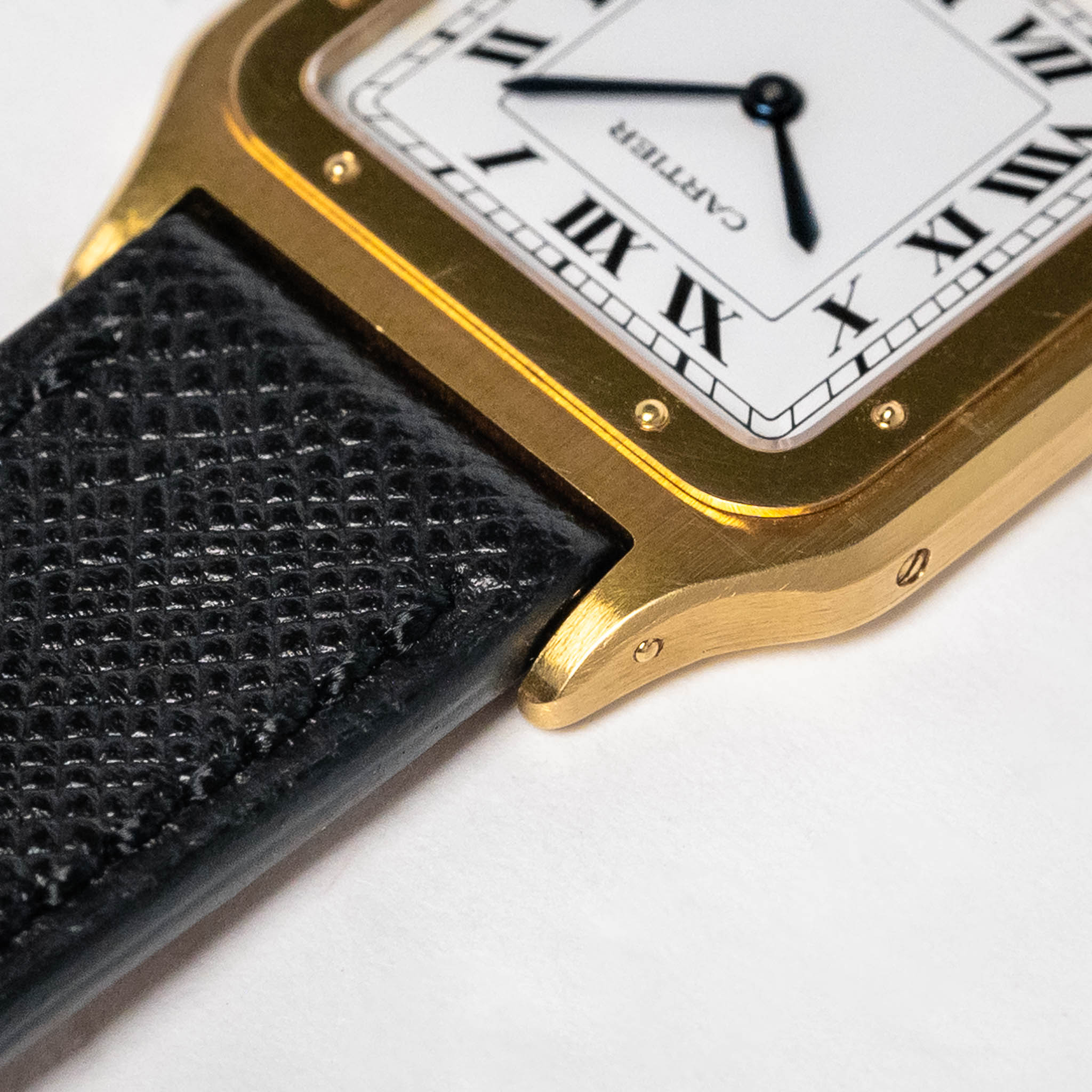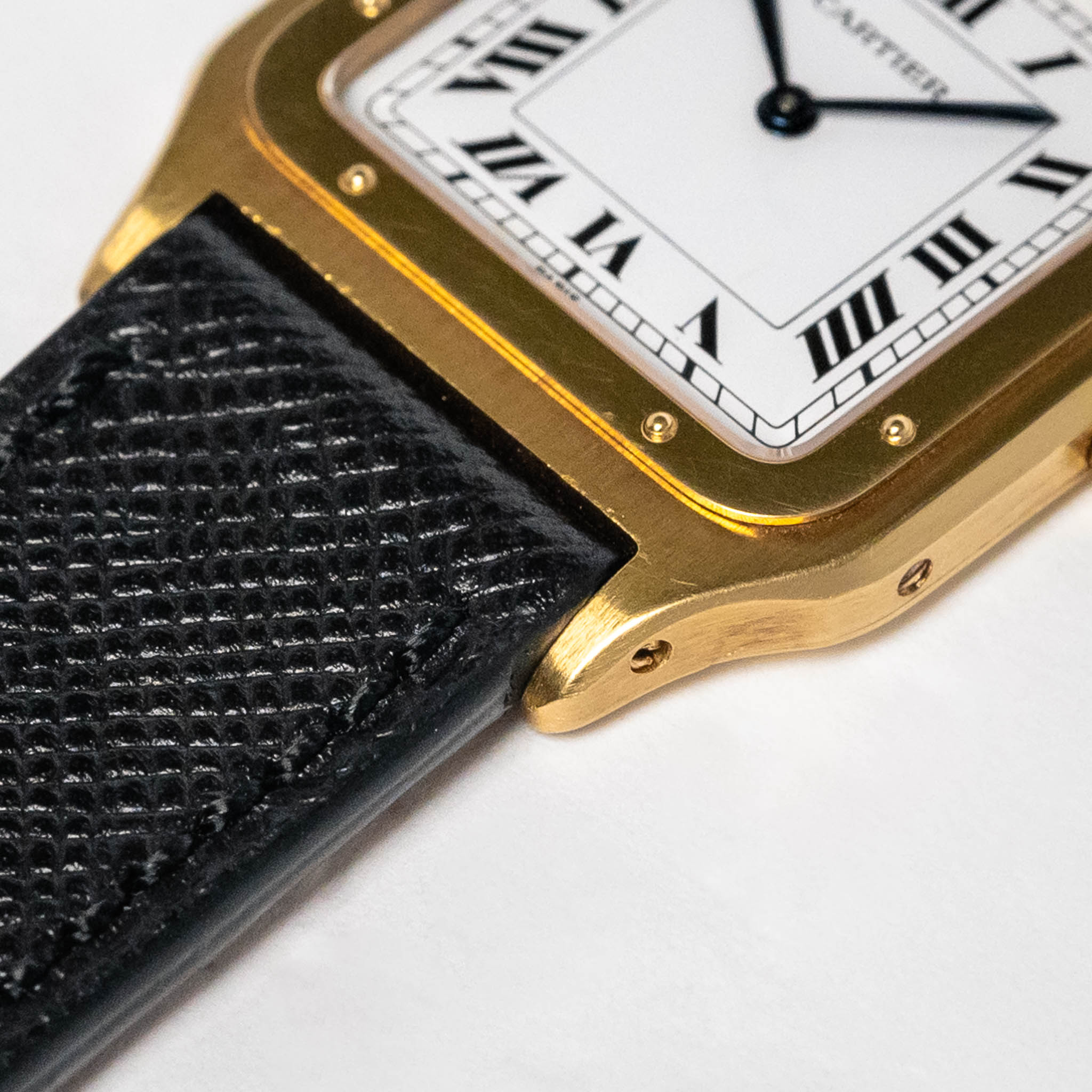 Cartier Santos-Dumont Ultra Thin on a midnight black saffiano strap.