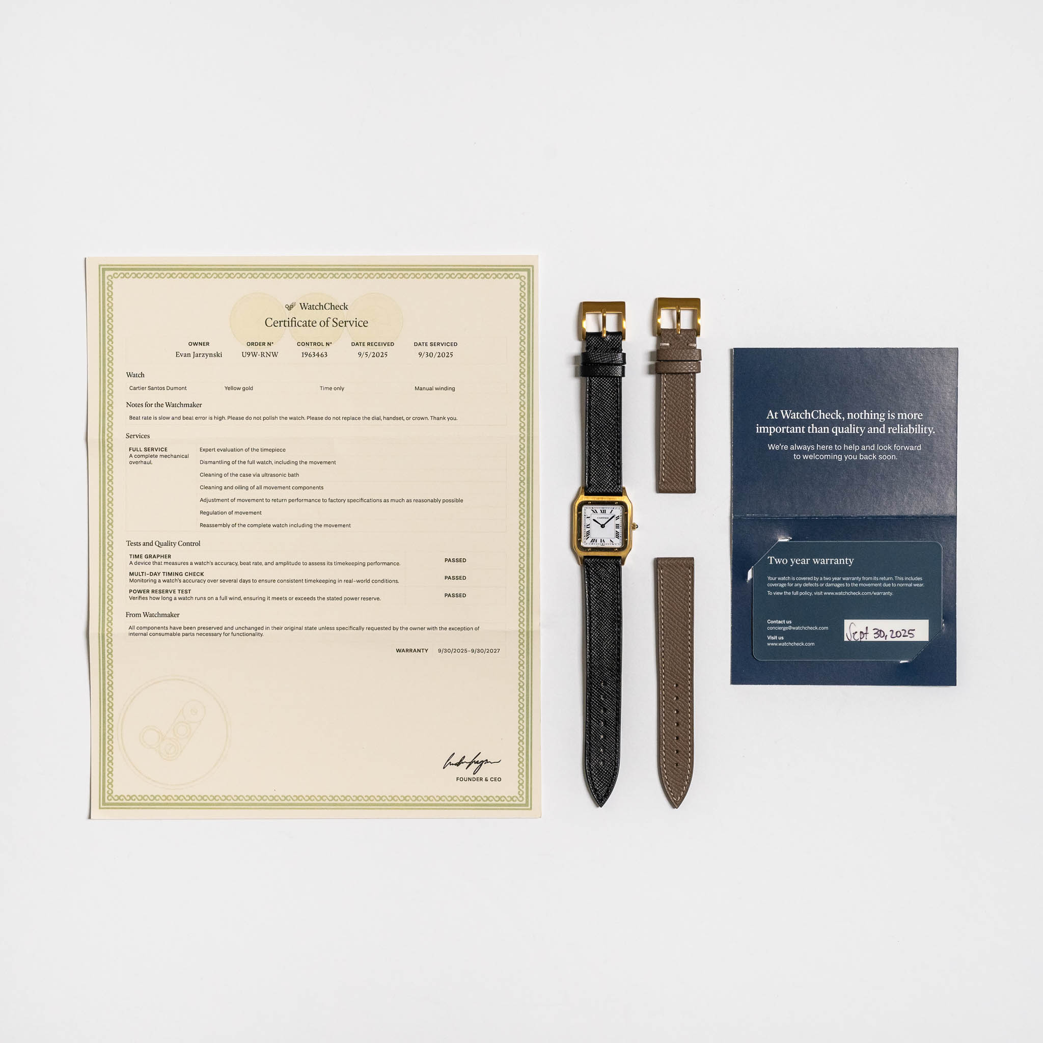 Service History: The watch underwent a full service by WatchCheck that was completed on 09/30/2025.
