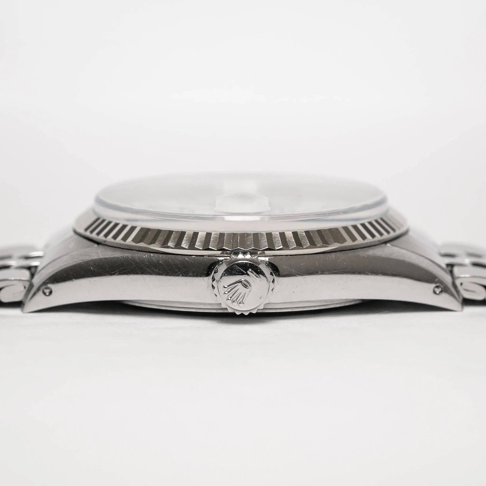 This particular version of the 94614 features a crisp white dial with printed black Roman numerals, a notable departure from the more commonly applied metal indices. The layout is immediately evocative of the legendary "Buckley" dials found on vintage Datejusts from the same era. While the 94614 was produced for about a decade, this specific Roman numeral variant was most prevalent during the mid 1980s. Like the Rolex version, the painted numerals provide a flat, graphic quality that enhances legibility and offers more "old-school" charm than a standard silver dial. Finding a 94614 in this specific style from its short 1980s run is a rare treat, as it perfectly captures one of the most beloved designs in Rolex history.