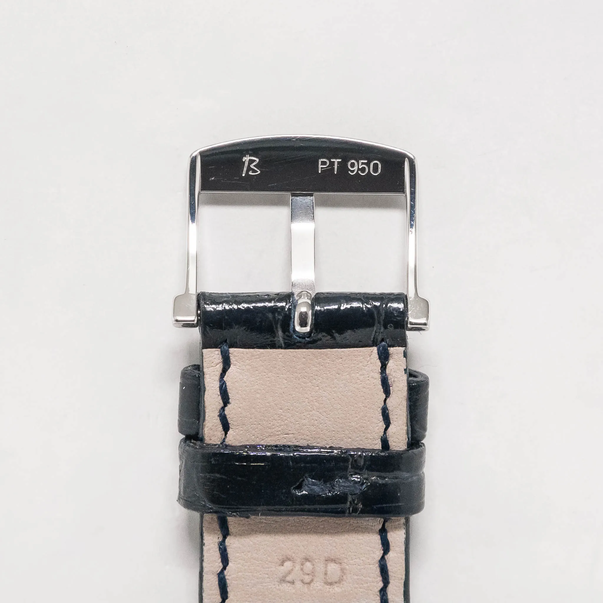 Blancpain navy alligator strap with platinum tang buckle