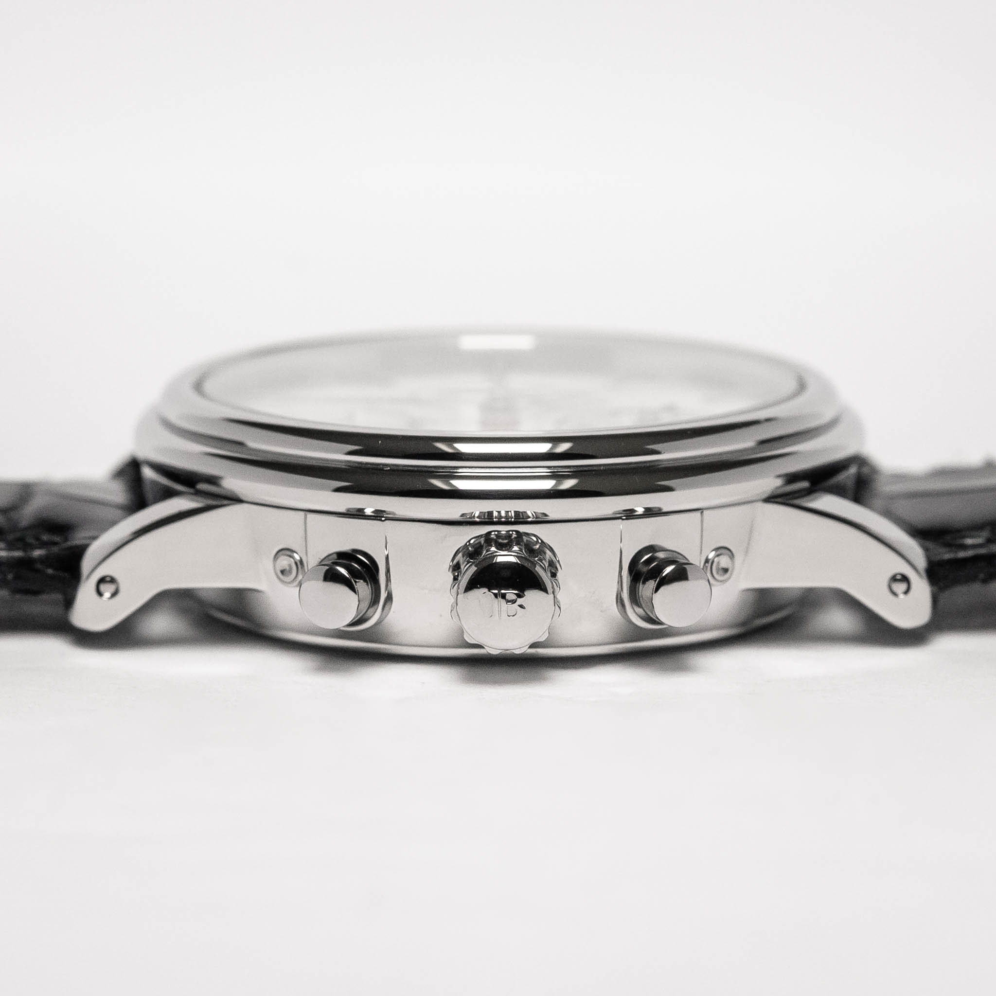 In addition to the six masterpieces unveiled during the 1980s, Blancpain experimented with combined complications including a perpetual calendar minute repeater, a perpetual calendar split seconds, and the perpetual calendar chronograph offered here. The latter was the only one made with two movement options — the hand-wound reference 5580 and the automatic reference 5585. Outside of the power source and a slight difference in case height (~1 mm thinner for the hand-wound option), both watches are identical, featuring a sporty outer seconds track, a leap year indicator, and independent operation of all calendar functions. These “super” masterpieces seem to have been manufactured in lower numbers as examples like this, with its original box and booklets, rarely come up for sale. What’s more, this watch has been fully serviced by Blancpain, ensuring accurate timekeeping and worry-free wear for the next owner.