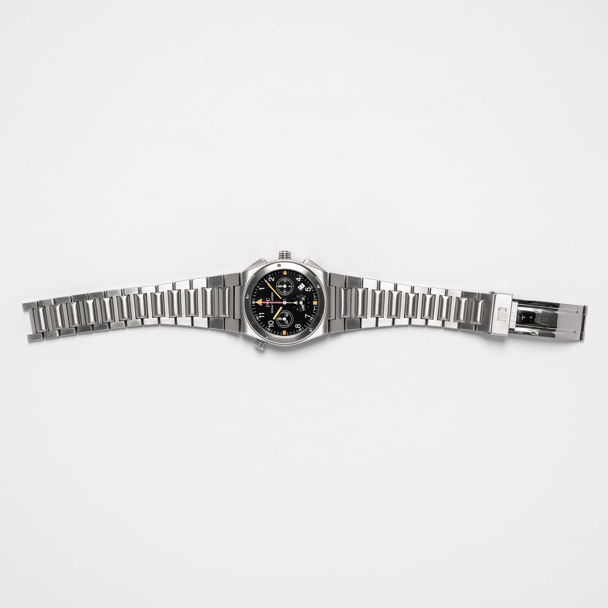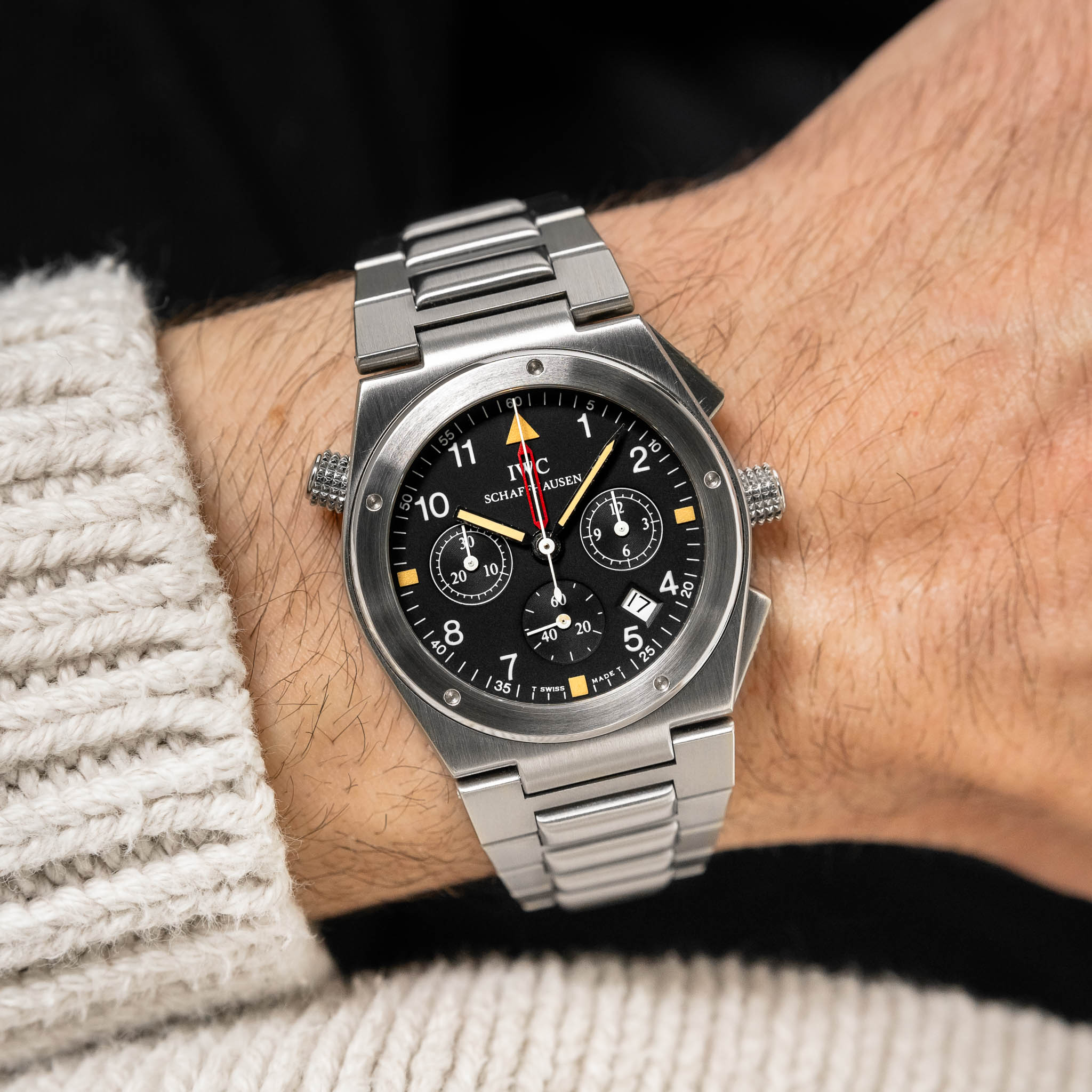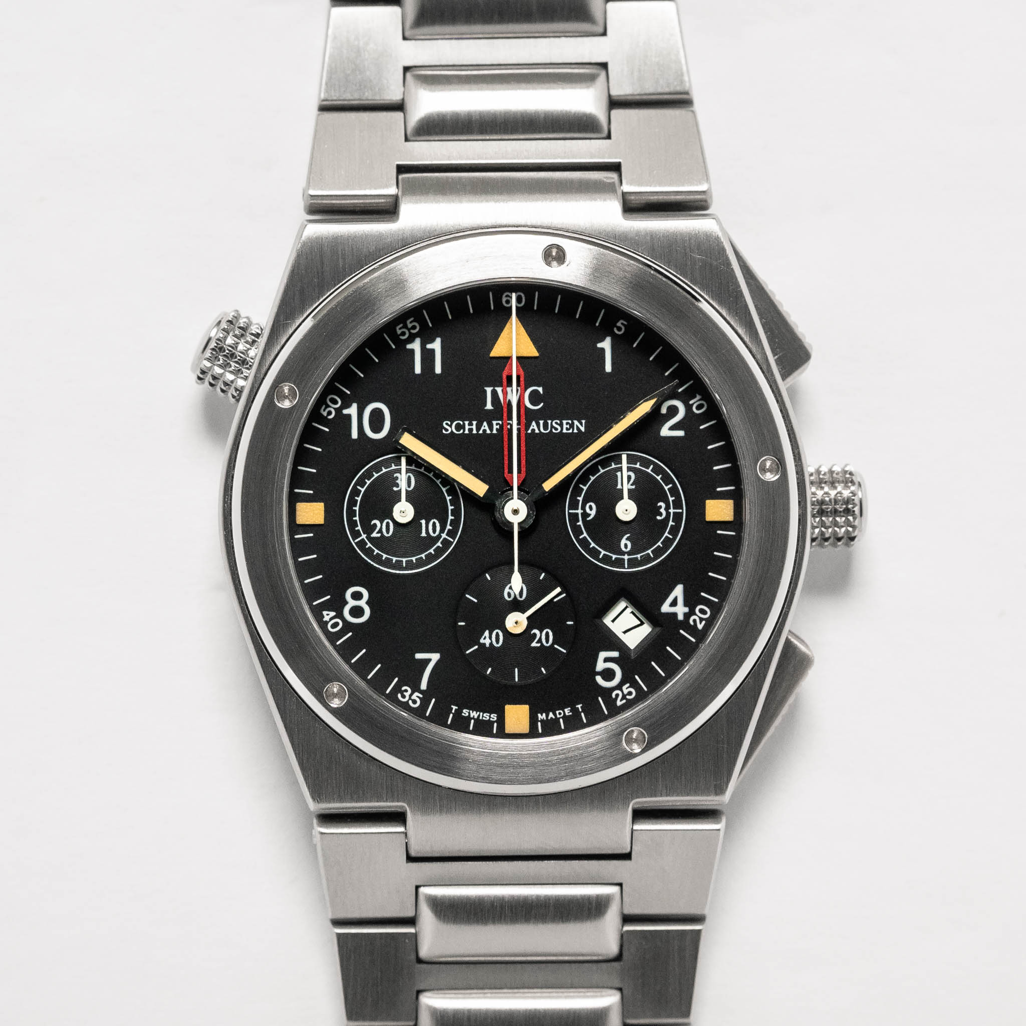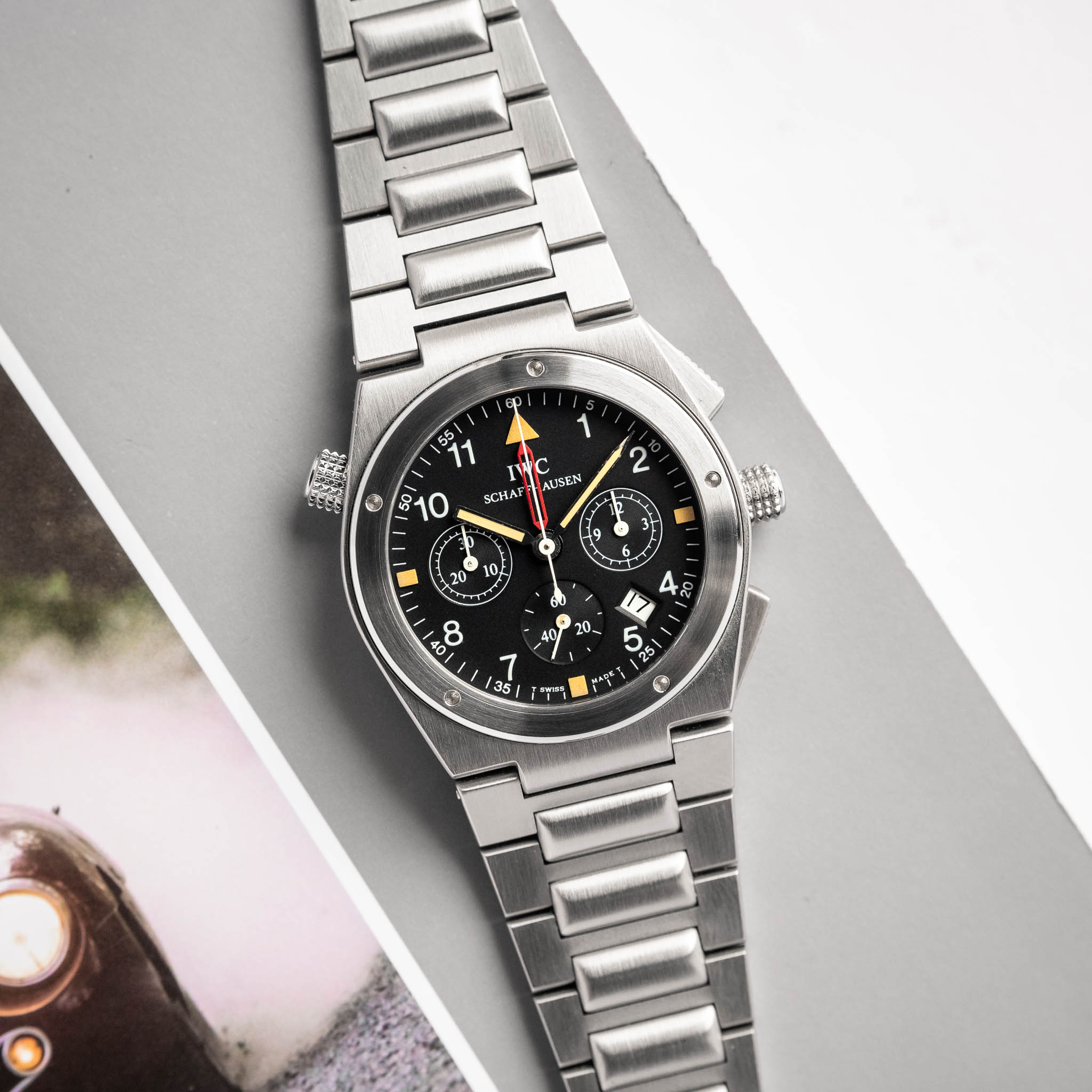 The example here is one of the nicest 3805s you’ll ever see, complete with the original boxes, instructions, and even an IWC service record from 2009. The case and dial have been wonderfully preserved, with only faint signs of wear and a graceful golden aging of the tritium plots. With so much visual and mechanical interest, it's no surprise the Ingenieur Chrono Alarm has developed quite a collector following in recent years.