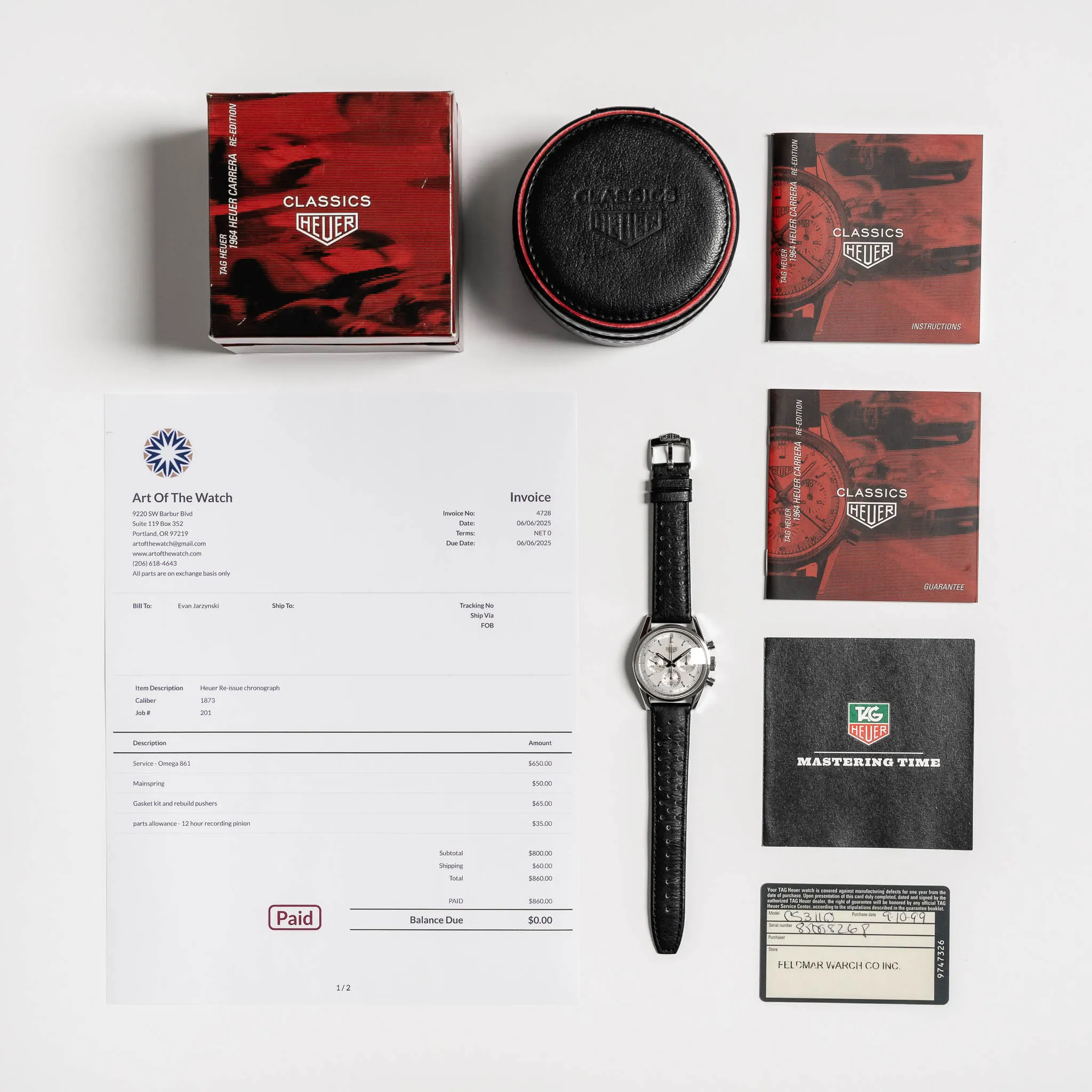 Service History: The watch underwent a full service by Art of the Watch that was completed on 06/06/2025.
