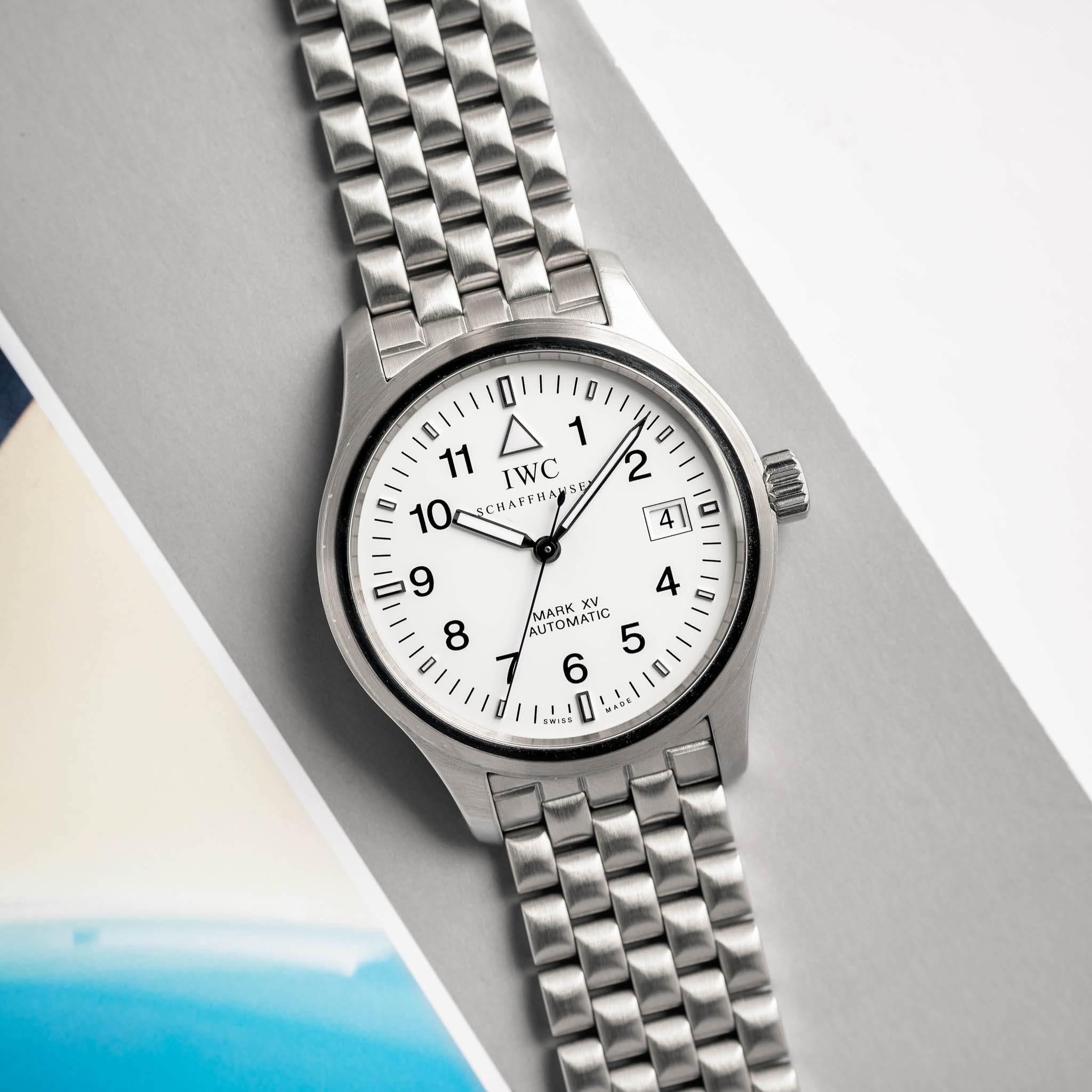A Mark XV with a rare white dial, a satin brushed case, and the IWC 37524 automatic movement.