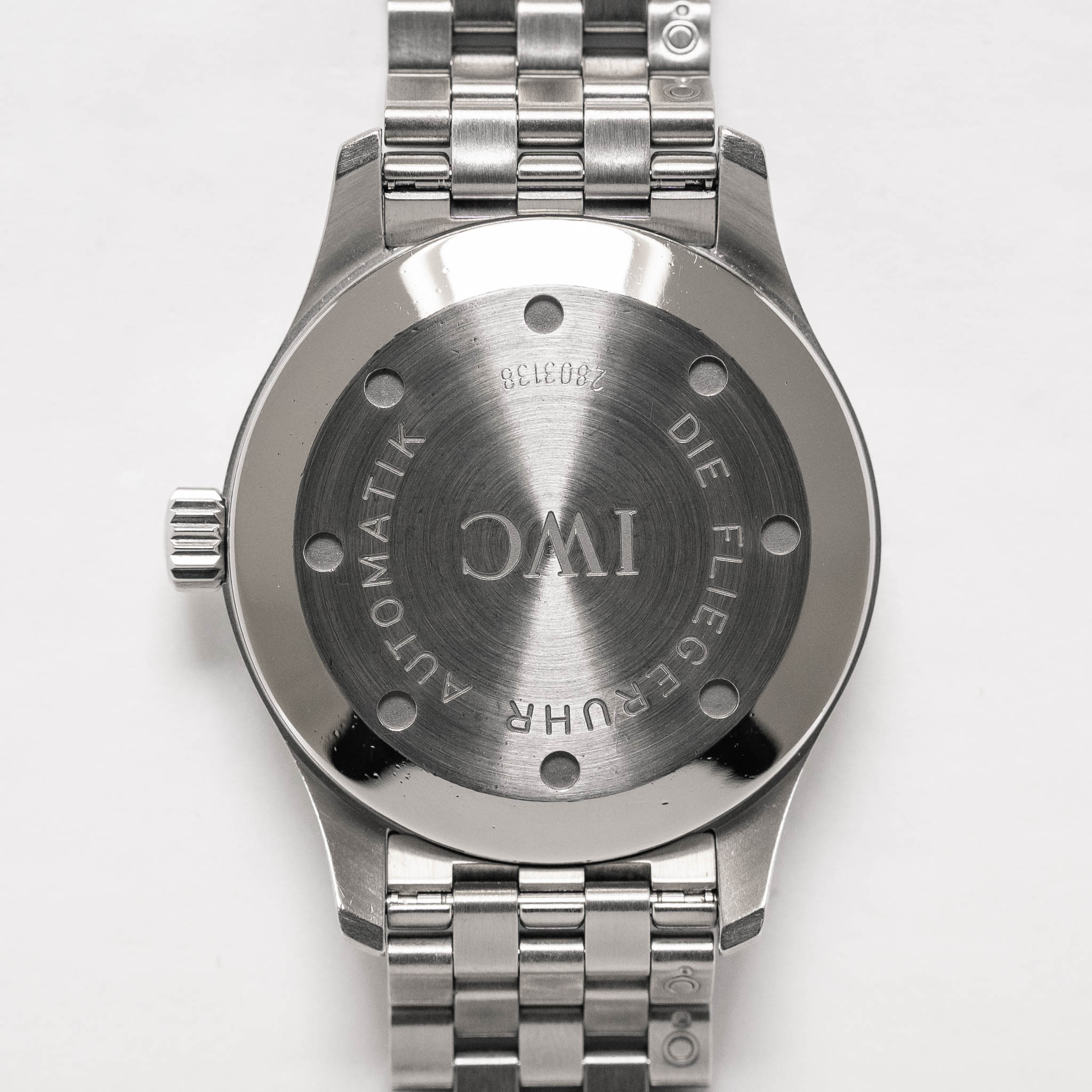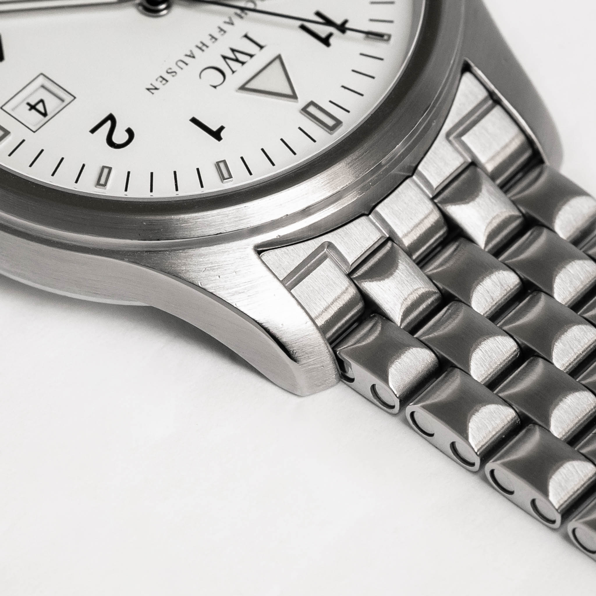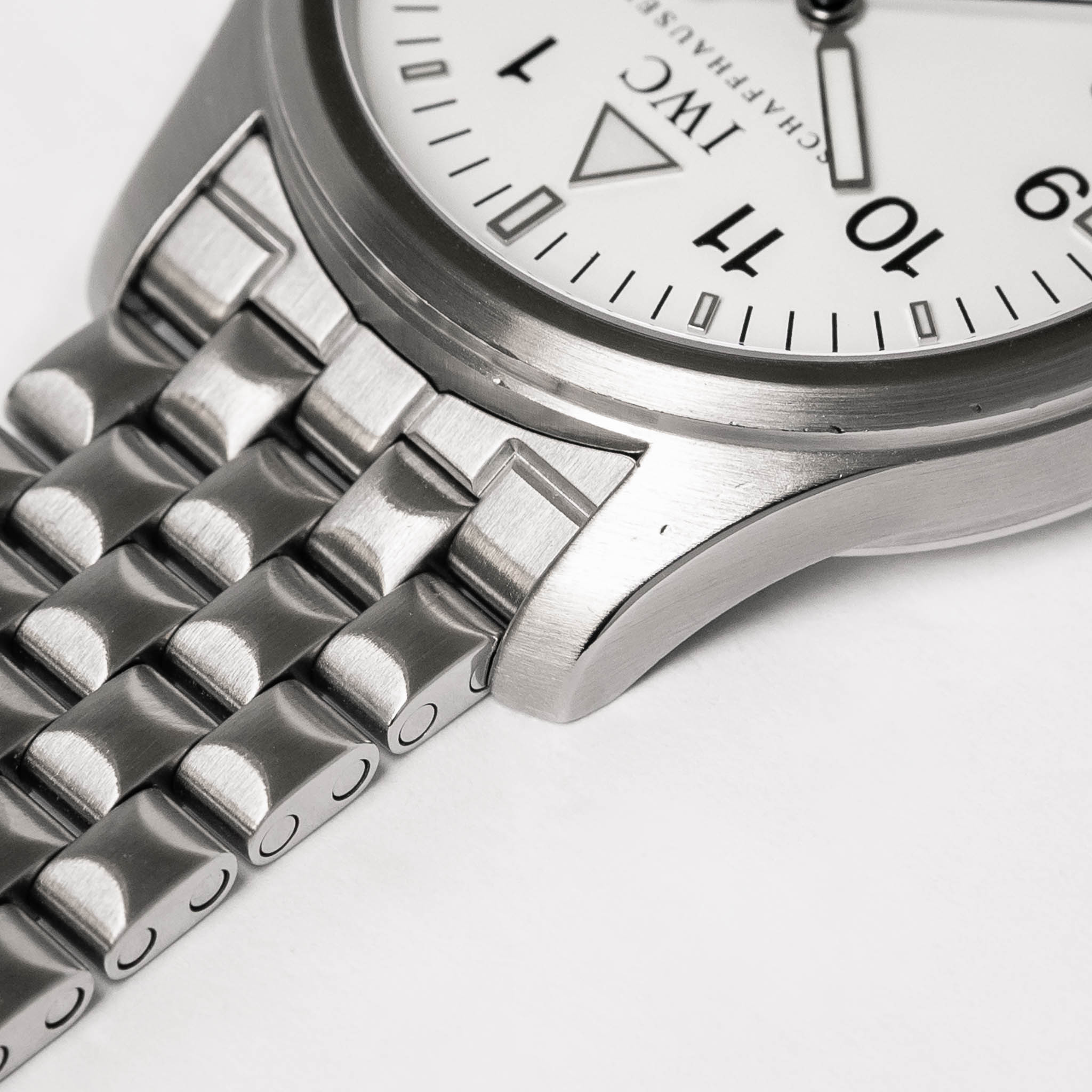 Bracelet/Strap: The IWC stainless steel bracelet is in fantastic condition with only a couple tiny scratches present and little-to-no stretching. The clasp opens and closes securely. The engraved IWC logo remains crisp and detailed.