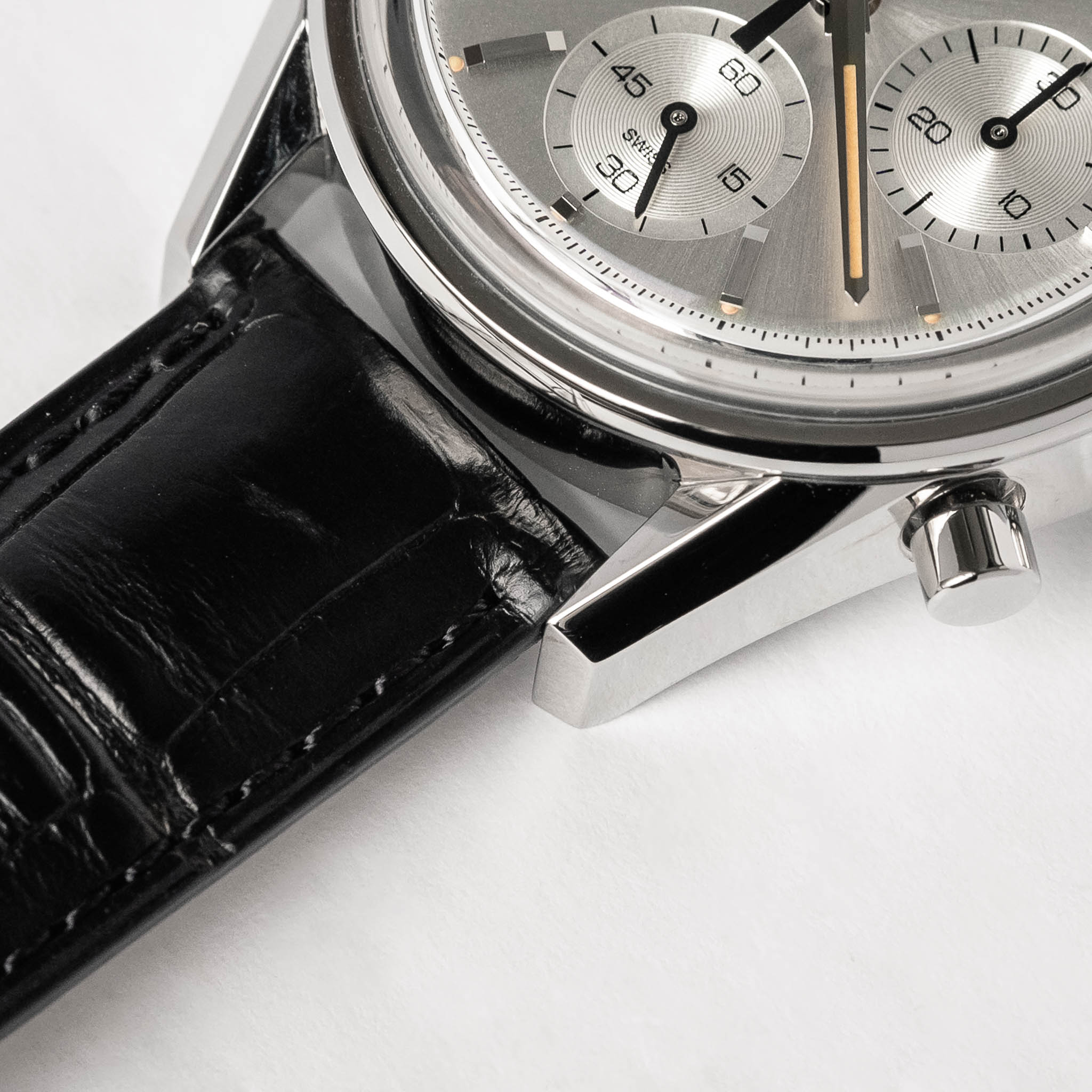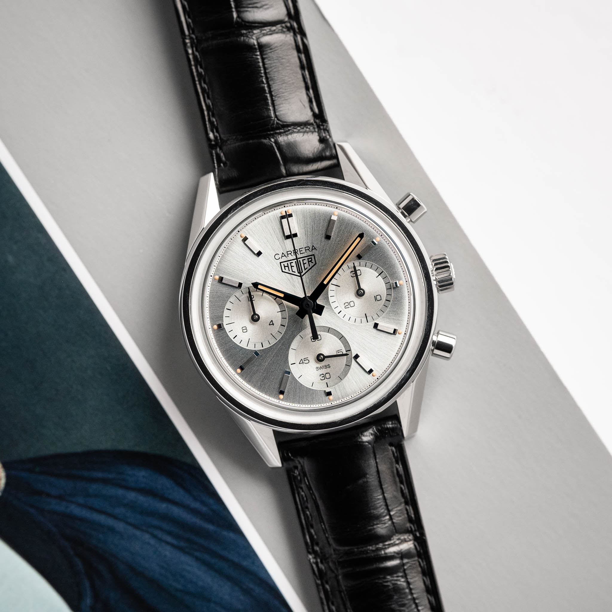 To celebrate TAG Heuer’s 160th anniversary in June 2020, the brand introduced a 1,860-piece limited edition that paid tribute to the coveted 2447S vintage model. The contemporary is a faithful reinterpretation of the original, featuring a cleanly executed silver sunburst dial, free from any unnecessary markings or date windows. TAG even used its old Heuer logo and employed a tasteful golden shade of Super-Luminova to replicate the aged tritium found on the vintage model.
